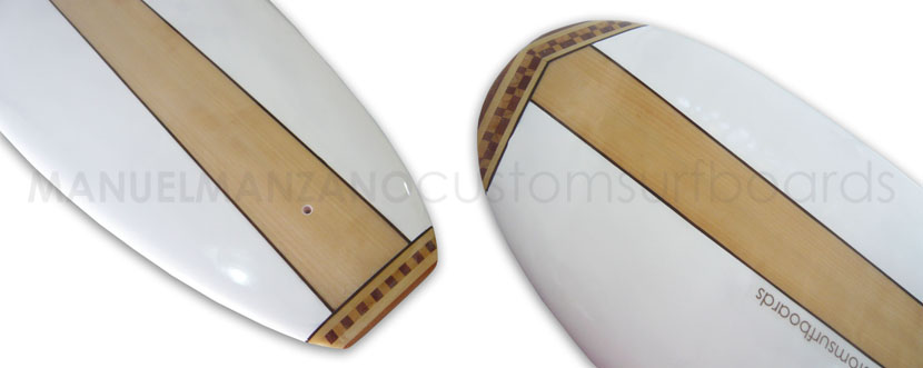 Laminado deck: 6 oz + 6 oz + Refuerzo 4 oz en los 2/3 centrales de la tabla.