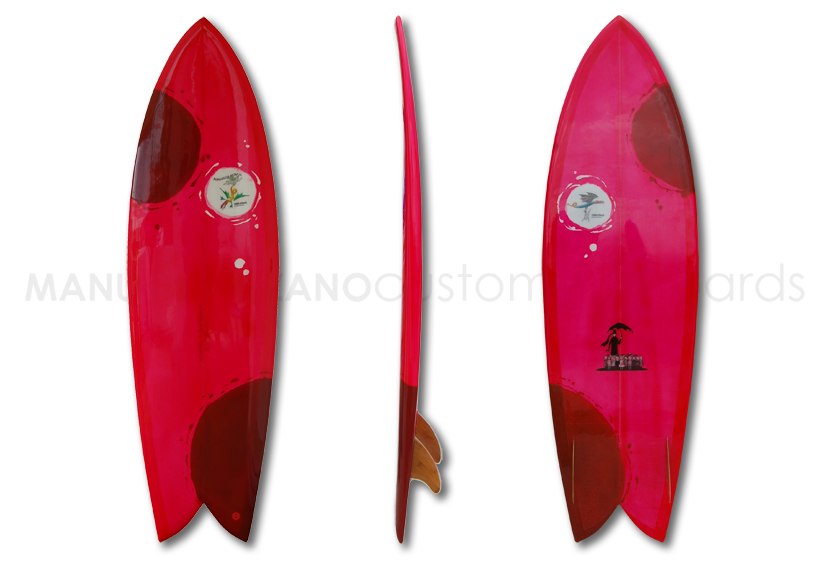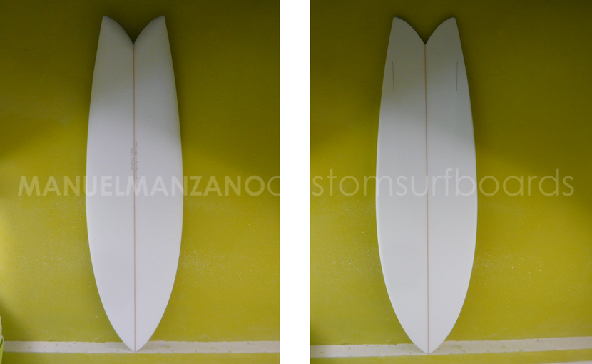 Aquí os presento una foto de este diseño, junto con el fish 6'0'' que he publicado anteriormente a éste. Aunque son dos shapes muy similares y que comparten muchas cosas, poner uno junto a otro, es la mejor forma de comparar las variaciones existentes entre sus outlines.