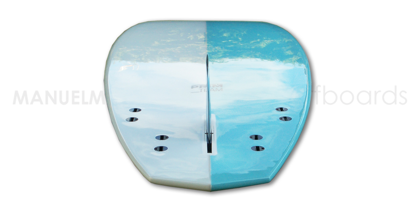 Bottom: plano en nose, cóncavo simple en el tercio central pasando a spiral vee en el último tercio.