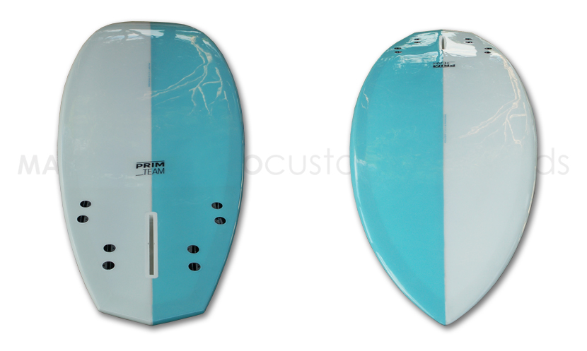 Laminado: Deck: 6 oz. + 4 oz. / Bottom: 4 oz + Refuerzo 4 oz. en zona de quillas.