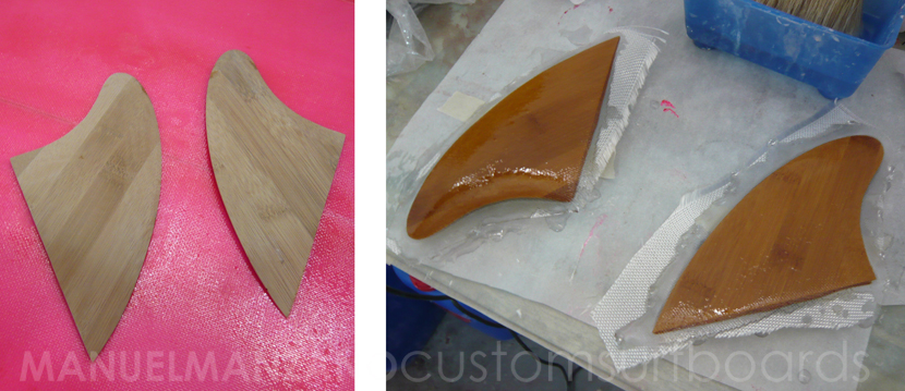 Twin-fin con unas keels de madera de bambú.