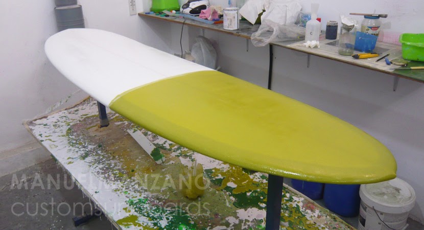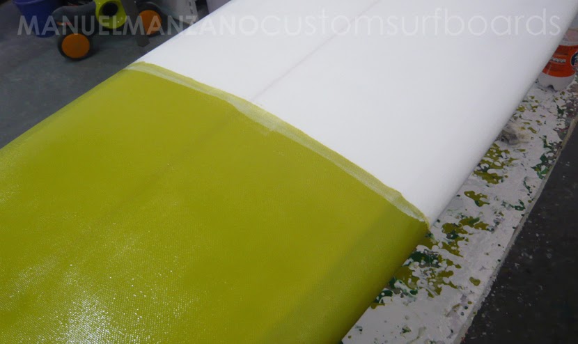 Comenzamos laminando la cara superior de la tabla con una capa de fibra de 4 oz., sin solapes: