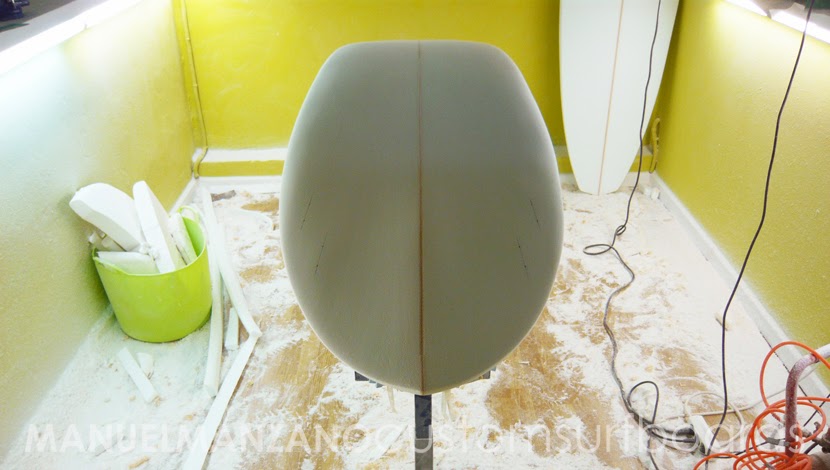 Cantos redondeados 60/40, transformándose en duros en arista en el tail. Cola redondeada (round-tail), como ya hemos comentado. Rocker delantero de 2 3/4'' y trasero de 2 1/2''.