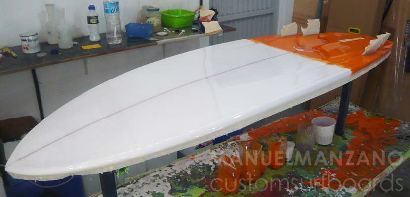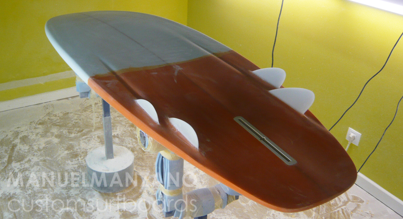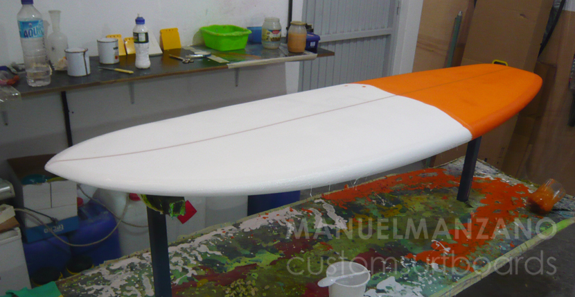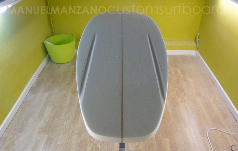 Medidas: 6'0'' (183cm) x 22 3/4'' (57,8cm) x 2 5/8'' (6,8cm). Cola muy ancha para mayor planeo; cantos boxy propios de tablas para olas pequeñas, sólo marcados en arista en el último tercio; deck muy plano para mantener mucho volumen central y arista en nose; bottom característico del bonzer5: plano en el primer tercio, cóncavo simple en el centro a doble cóncavo en último tercio, con canales entre los runners hasta mitad de la tabla.